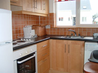 der Eßbereich mit hochklappbarem Tisch, die kleine Küche