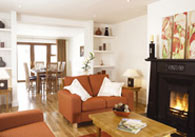 und helle Wohnbereich mit gemütlicher Sitzgruppe, Kamin, TV